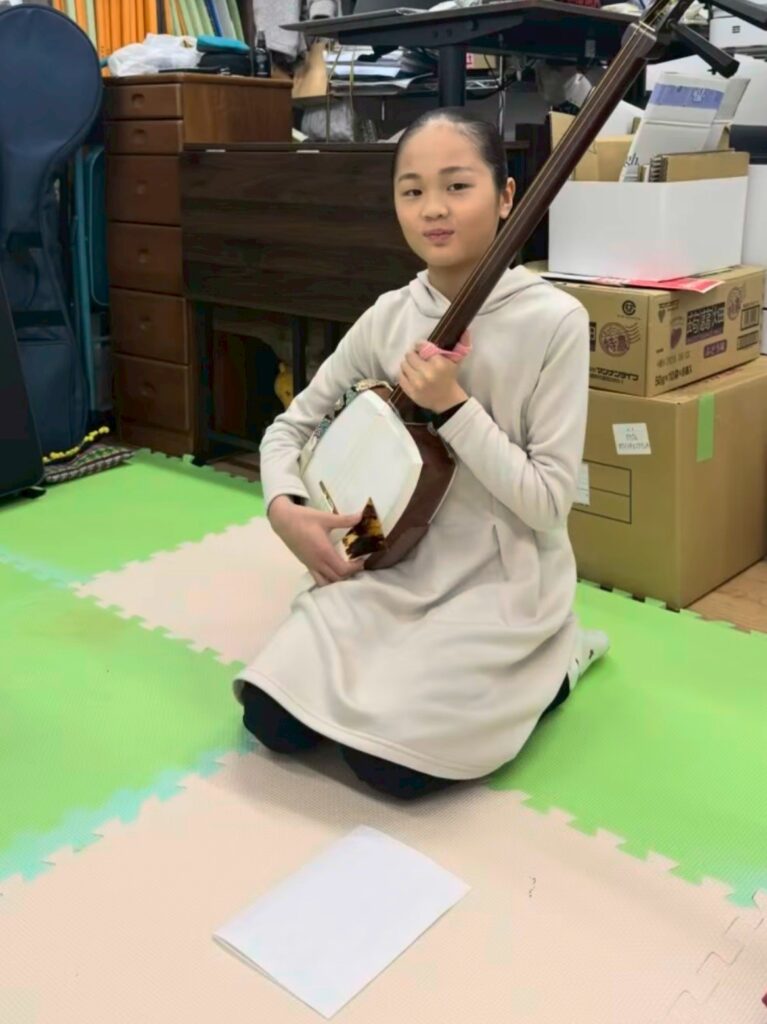 三味線は、重いし難しい…。