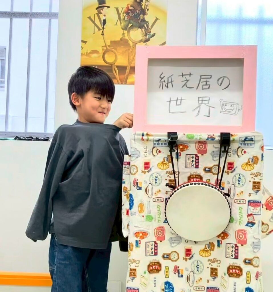 自分たちも簡単な自己紹介紙芝居に挑戦しました。