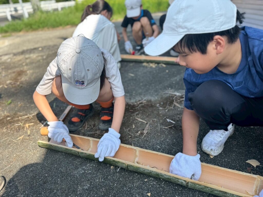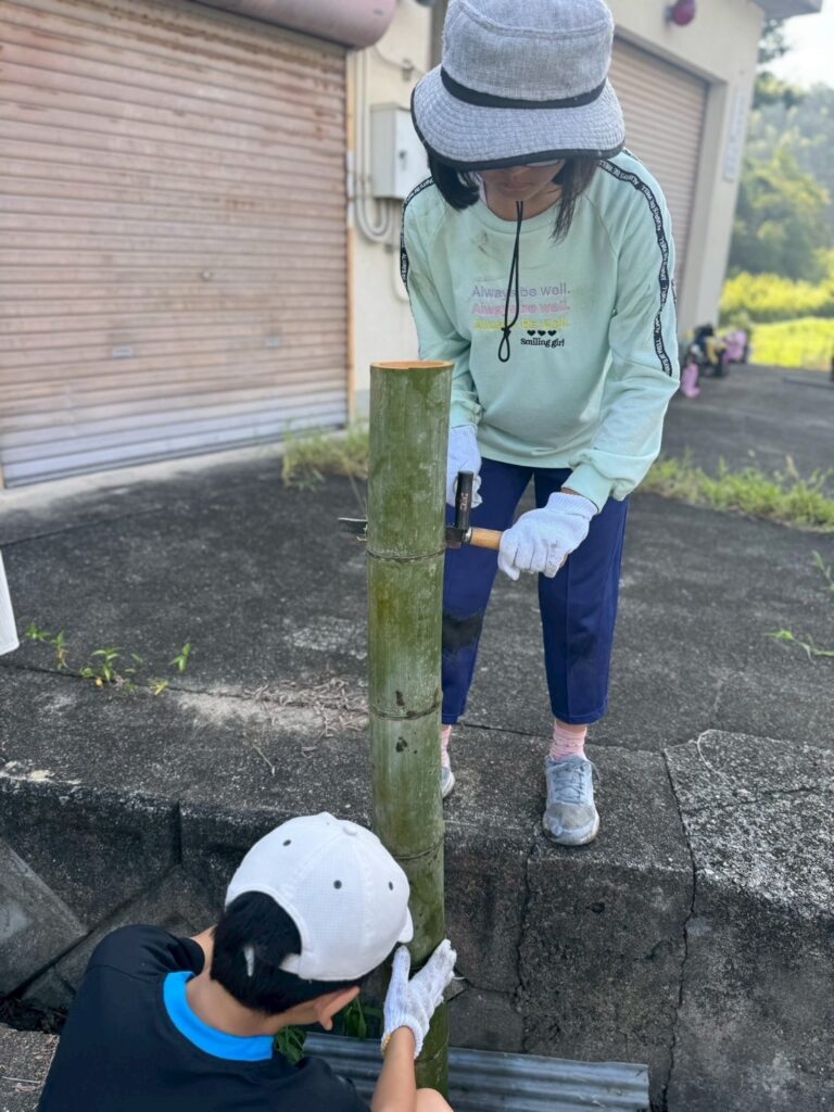 流しそうめん用の竹伐採と加工に行きました。