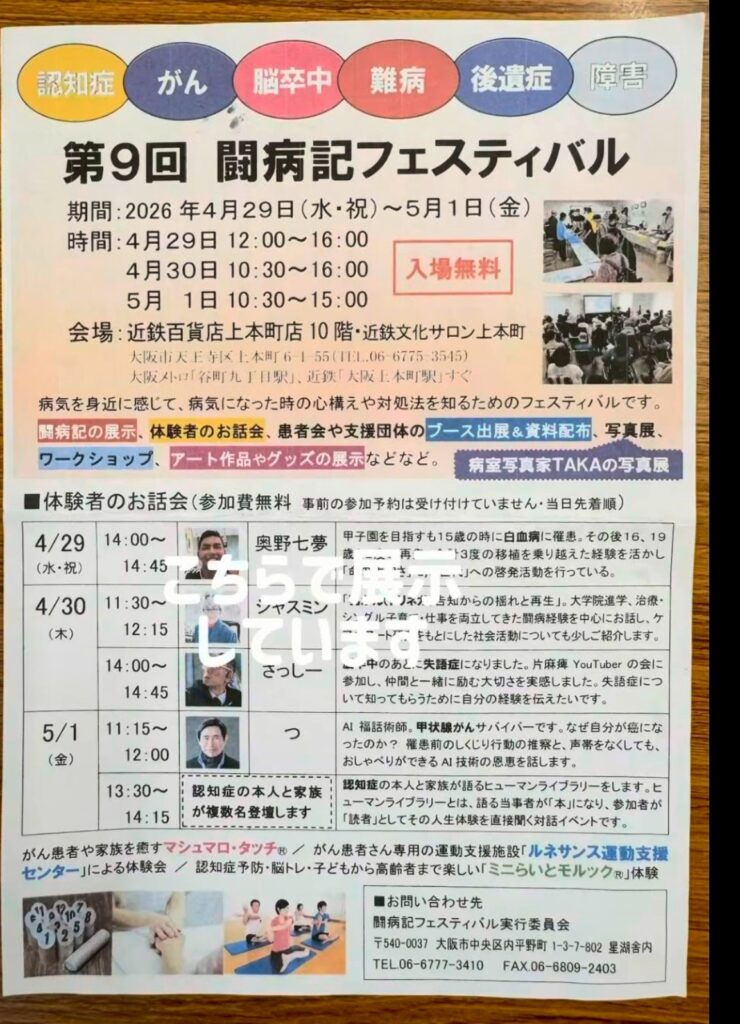 第9回闘病記フェスティバルに参加させていただきます。