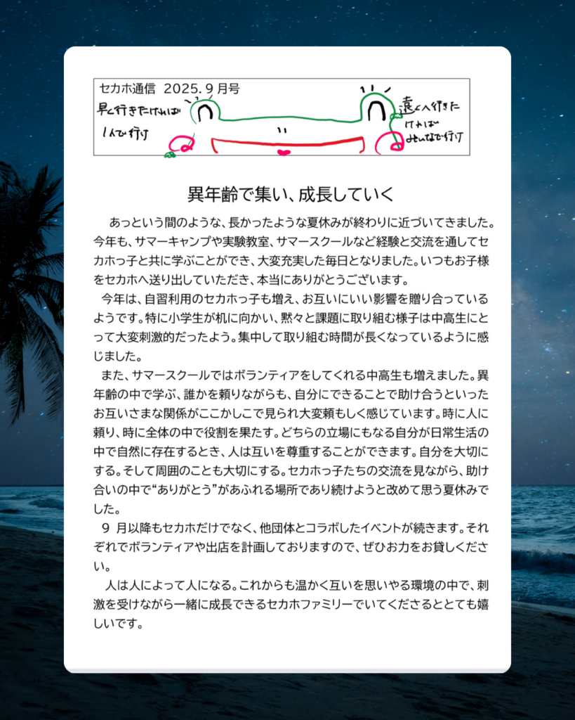 いつもお子様をセカホへ送り出していただき、